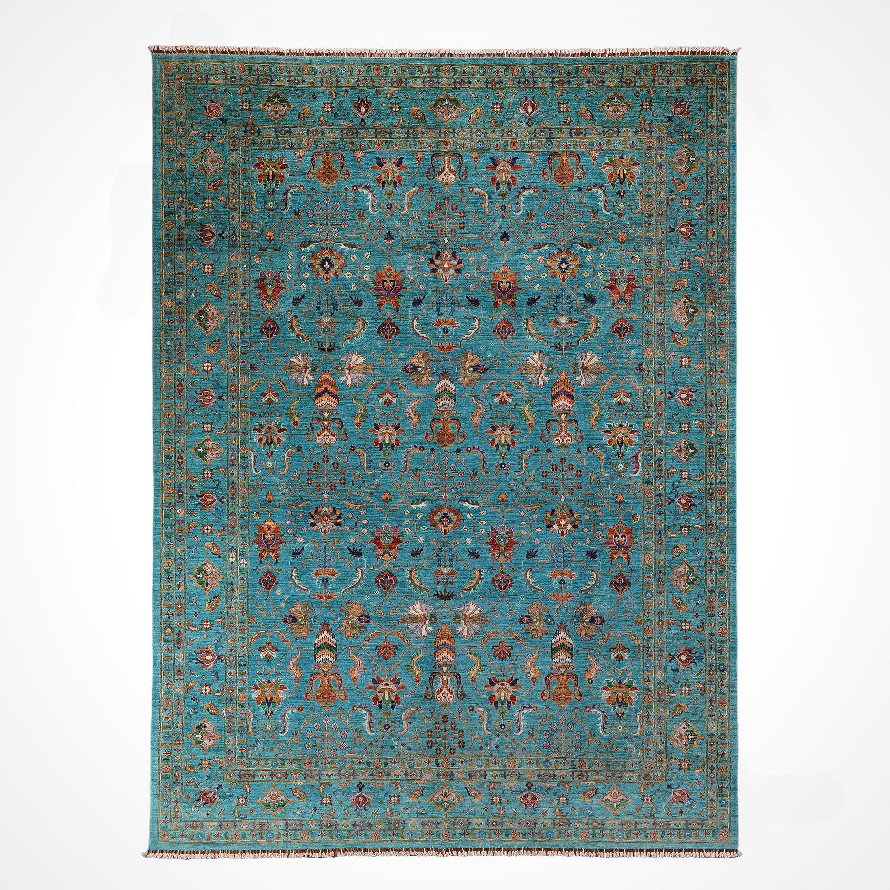 Binbirgece Original Hand Woven Turquoise Vegetable Dyed Wool Carpet