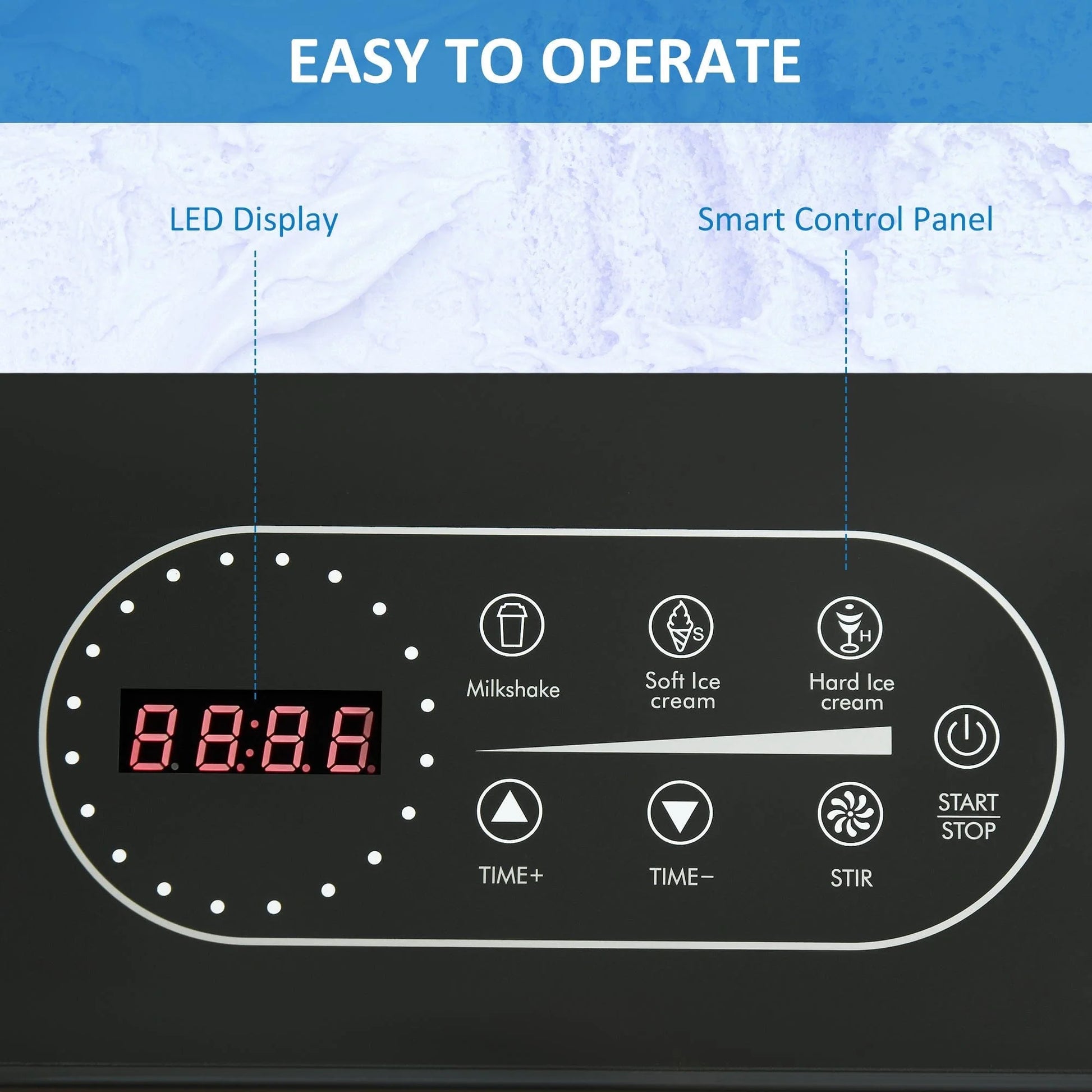 - LED Display: Digital display makes it easy to control and read the current setting. Settings can be adjusted easily, saving you time when making. The frozen dessert maker also features timer for greater control.