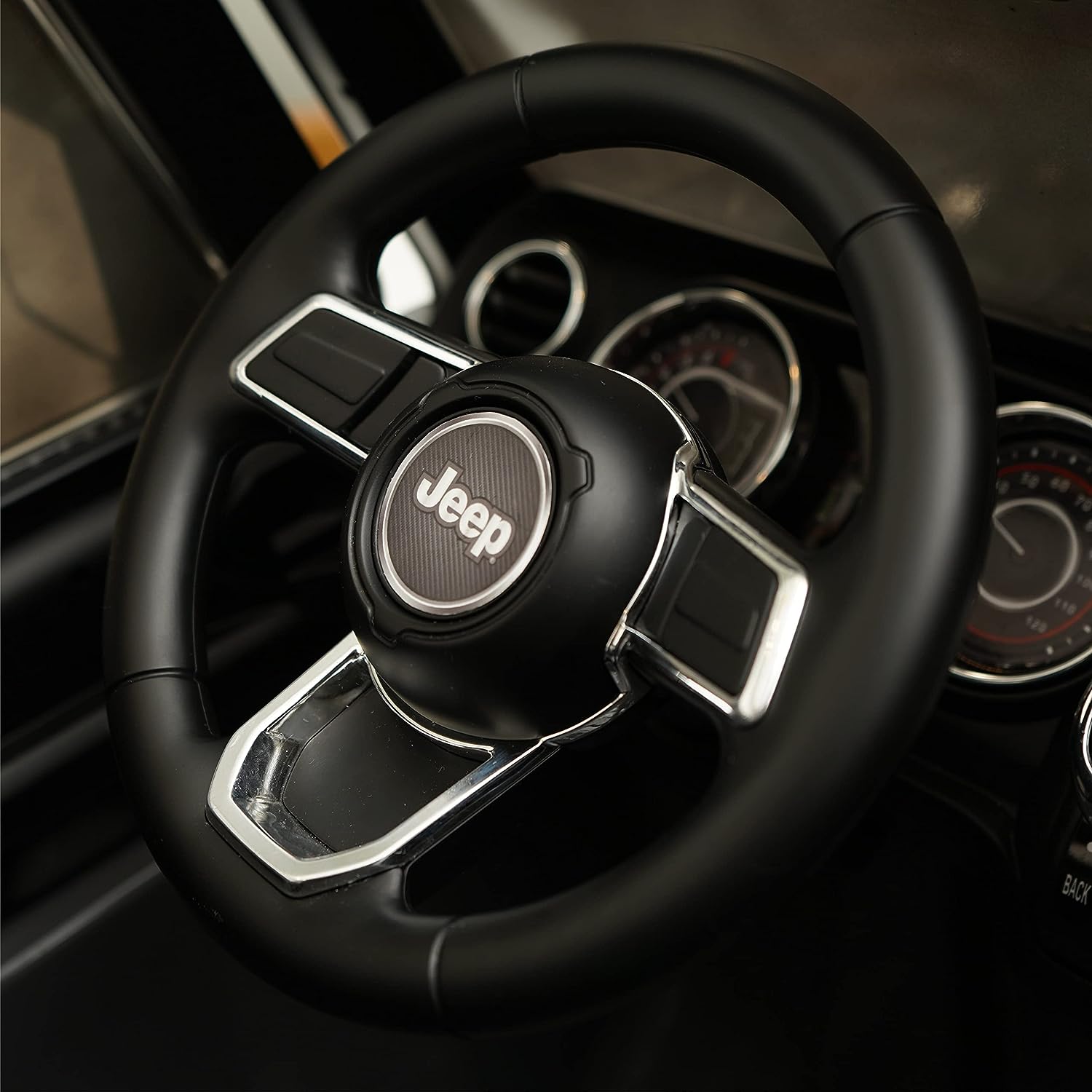 - INTERACTIVE FUNCTIONS IN A JEEP FOR KIDS. All kids ride on toys should be fun and interactive and with an easy push button start, rev-roaring sound controls, and 2 seats for extra friendly fun we've accomplished this toddle electric car.