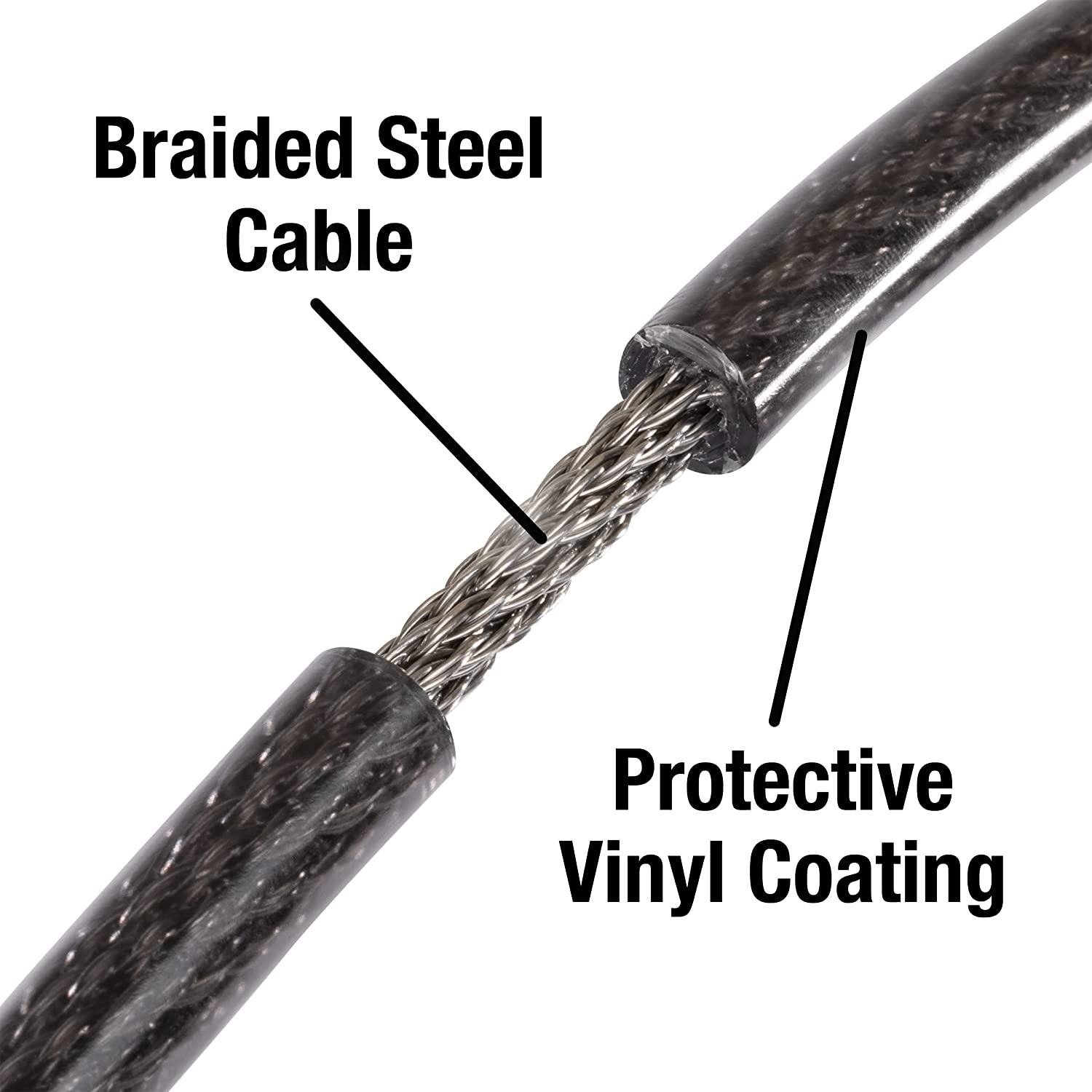 - Bike lock is made with braided steel for flexibility, and includes a protective vinyl coating that helps prevent scratching