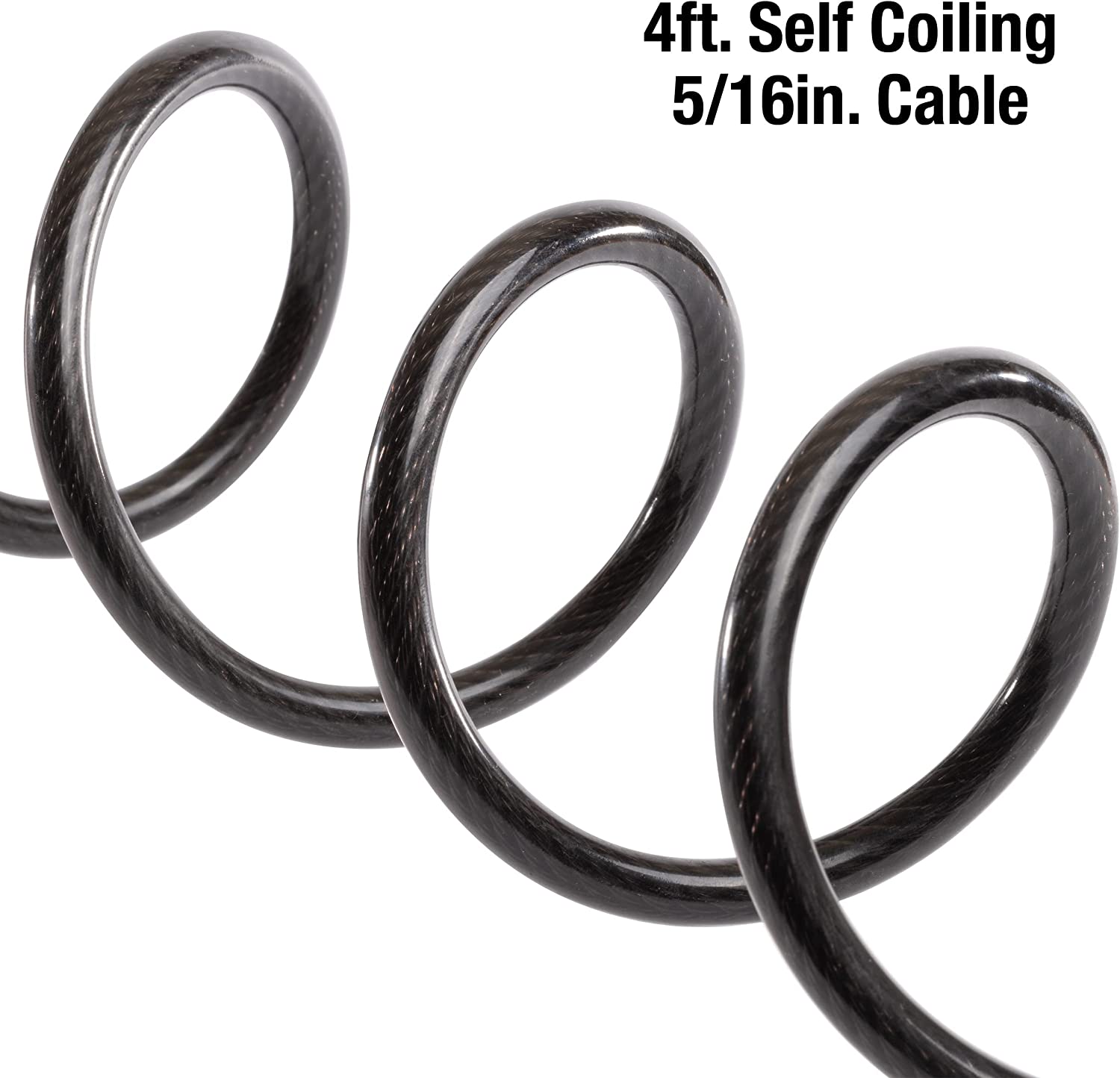 - Bike lock cable is 4 ft. (1.2 m) long and 5/16 in. (8 mm) wide in diameter